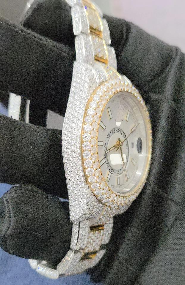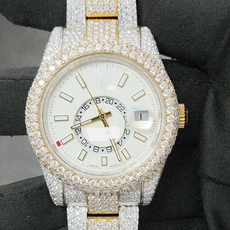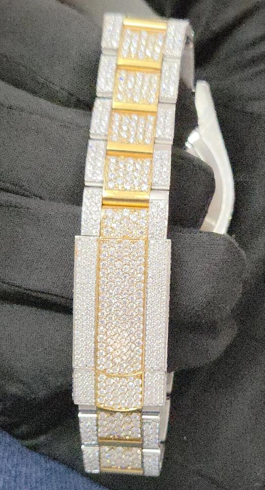 นาฬิกาสปอร์ตผู้ชายสีเหลืองขาว ประดับเพชรโมอิสซาไนต์ VVS ชุบสองสี หรูหรา ระบบอัตโนมัติ กลไกจักรกล ขนาด 41 มม. คุณภาพพรีเมียม สไตล์ฮิป