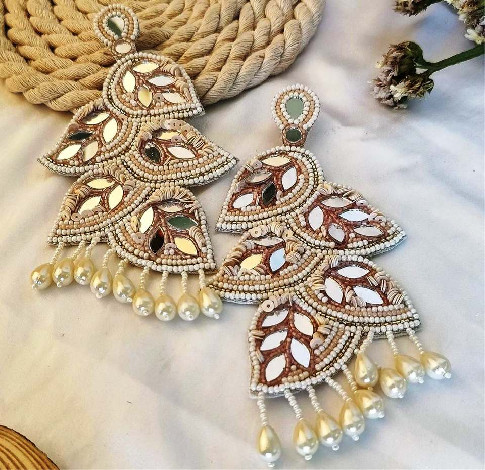 Yellow-white Beaded Floral Earrings Custom Multi-Beaded Earrings Women Festive Party Jewelry At Best Price Beaded Earrings
