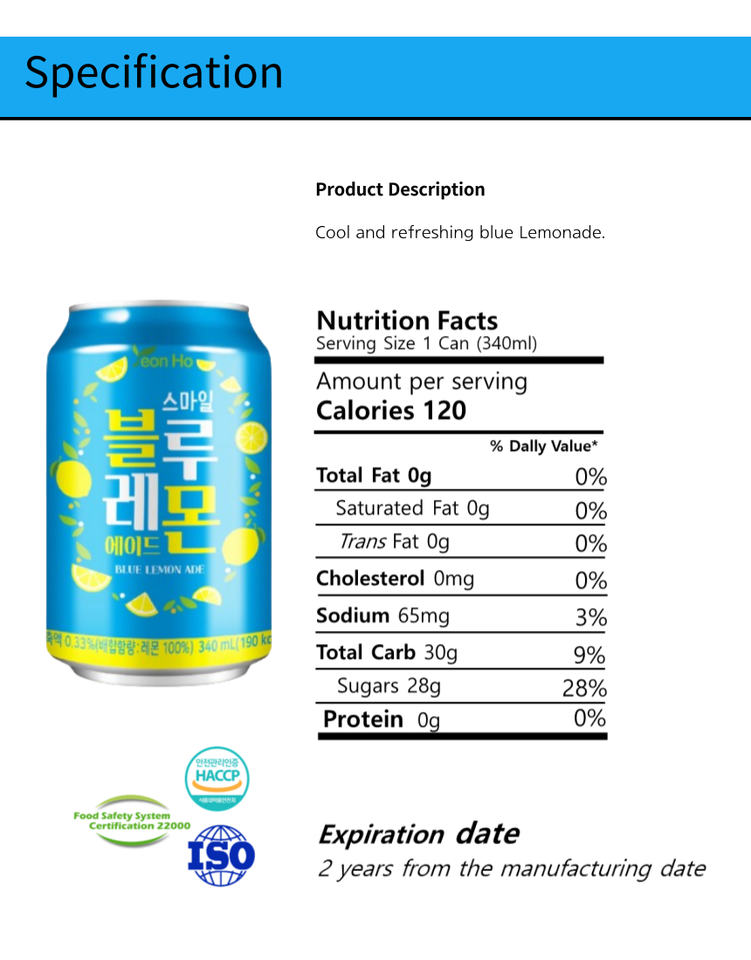 ยิ้มน้ำมะนาวสีฟ้า (340มล.)ส่วนผสม