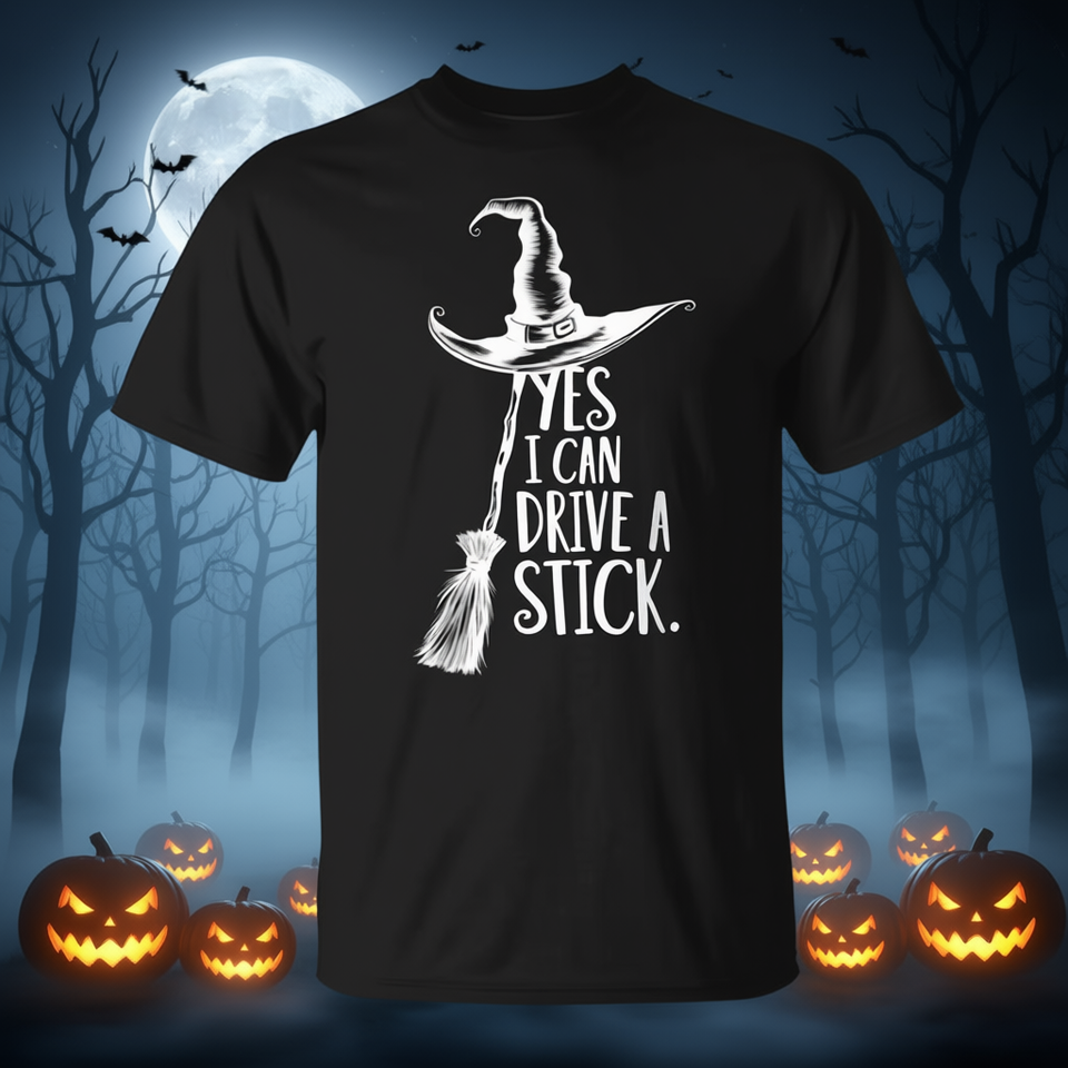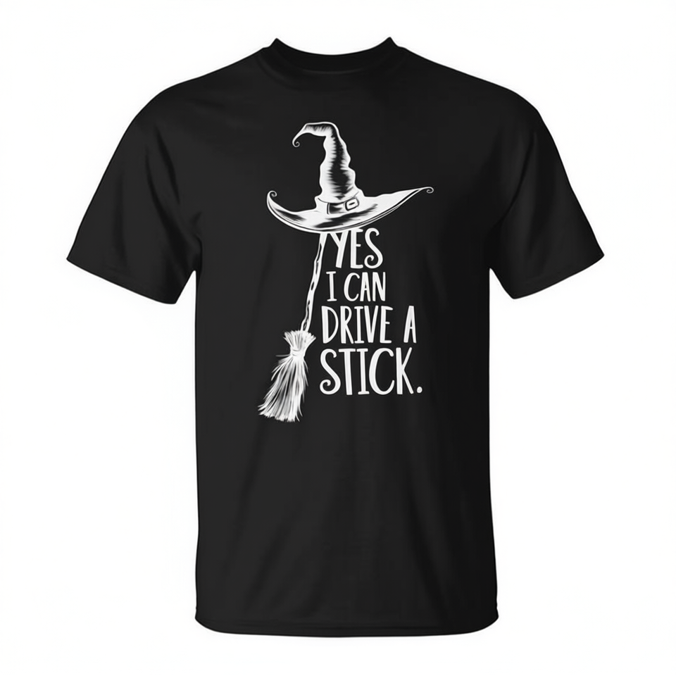 ใช่ฉันสามารถขับเสื้อยืดลายแม่มดฮาโลวีนสำหรับผู้ใหญ่ทุกเพศเสื้อแขนสั้นคอกลมผ้าไหมพิมพ์สกรีนลาย