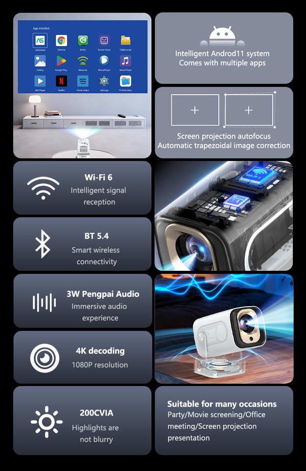 โปรเจคเตอร์อัจฉริยะ Yesido BT5.4+Wifi 6 ระบบสัญญาณอัจฉริยะ กำลังขับ 3 วัตต์ รองรับการถอดรหัส 4K ความละเอียดสูง 1080P สำหรับใช้ในบ้าน รุ่น TV16