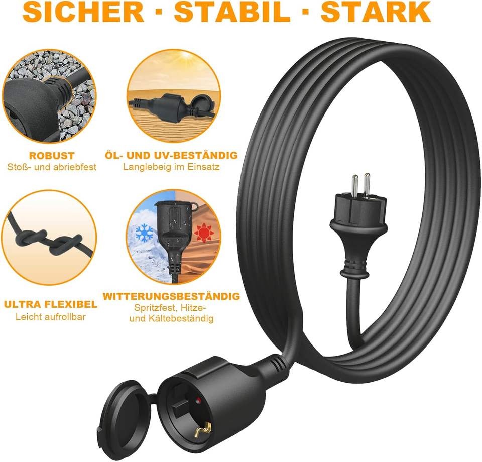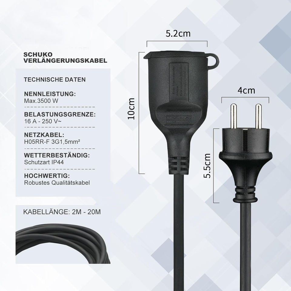 Yi Lun EU SCHUKO สายไฟต่อพ่วงตัวผู้กับตัวเมีย16A 250โวลต์16FT/5ม. 3ง่ามสไตล์ยุโรปเยอรมนี
