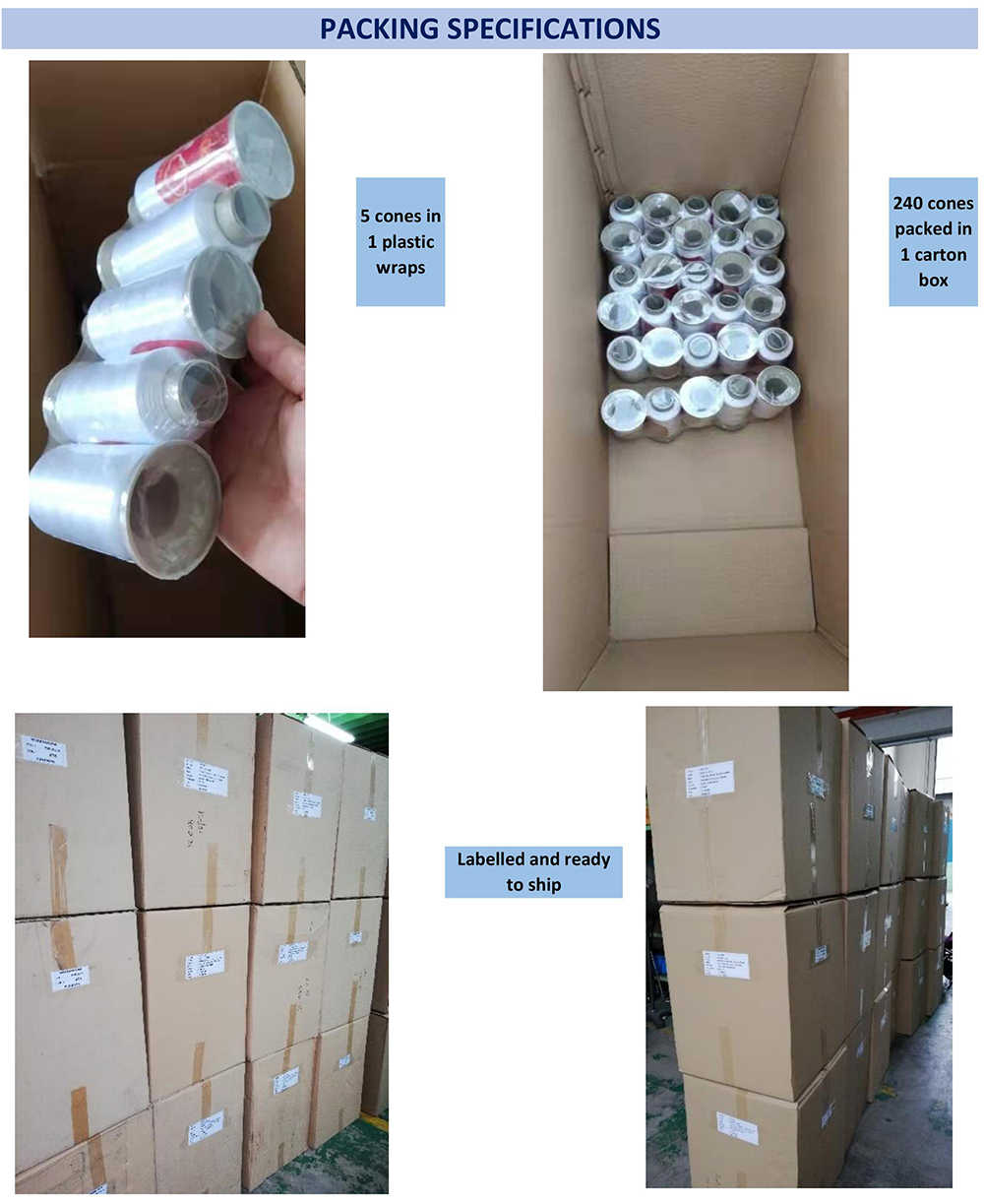 Packaging Details:1. Wrapped in plastic bag per cone.