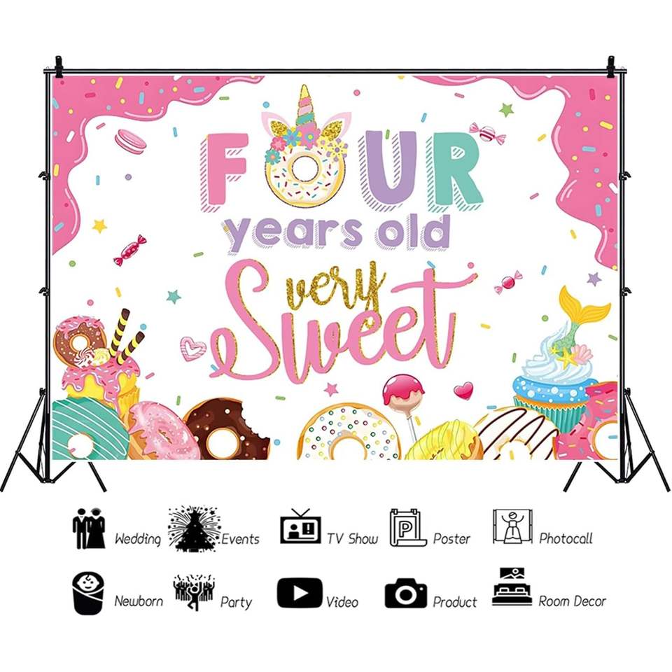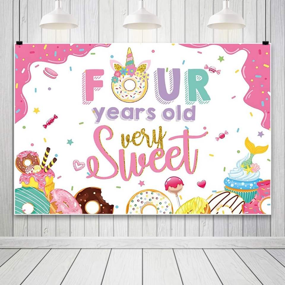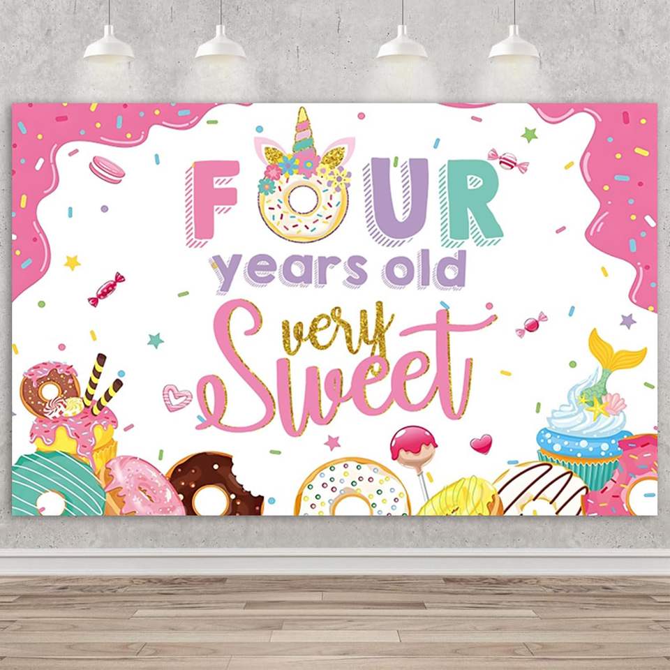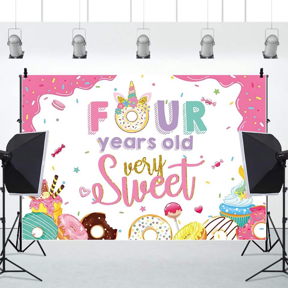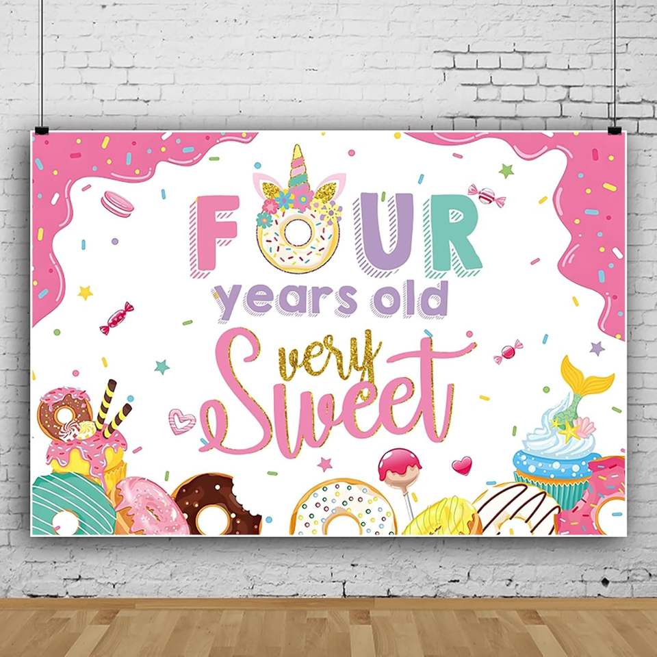 ยีอาร์ตาน 12x10 ฟุต ฉากหลังถ่ายภาพไอศกรีมโดนัทขนมหวาน ตกแต่งผนังงานปาร์ตี้เด็กหญิงอายุสี่ขวบ น่ารักมาก! ทำ