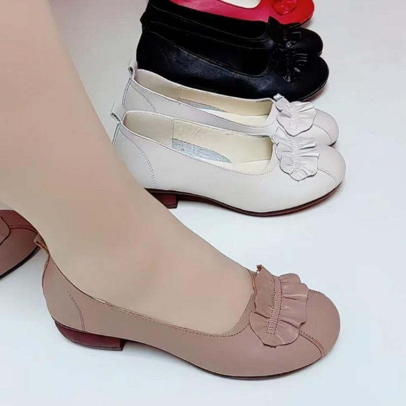 Yierkang 2025 Spring Autumn Women's Genuine Leather Dance Shoes Comfortable Soft Sole Slip-On One-Step Mother Shoes