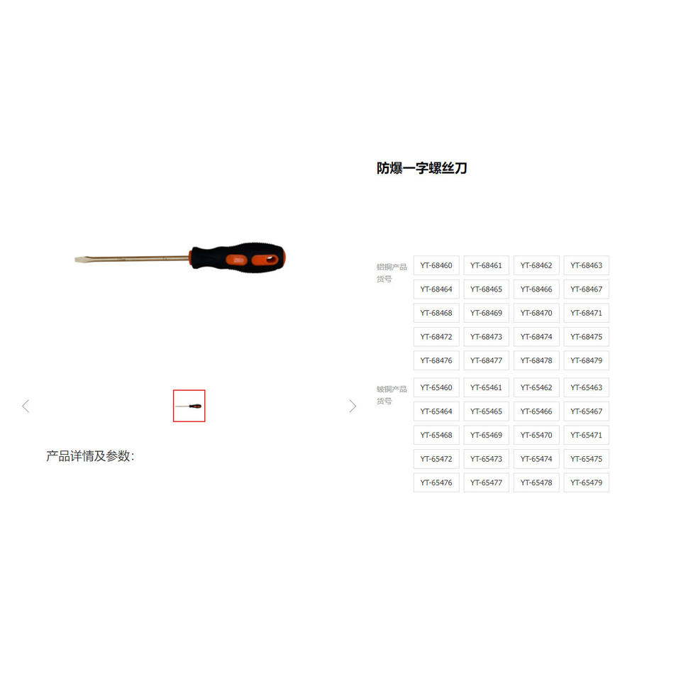 ไขควงหัวแบนป้องกันการระเบิดยี่ห้อเยียร์ตัว รุ่น YT-65460 ทำจากเบริลเลียมคอปเปอร์ สำหรับงานอุตสาหกรรม ป้องกันการเกิดประกายไฟ