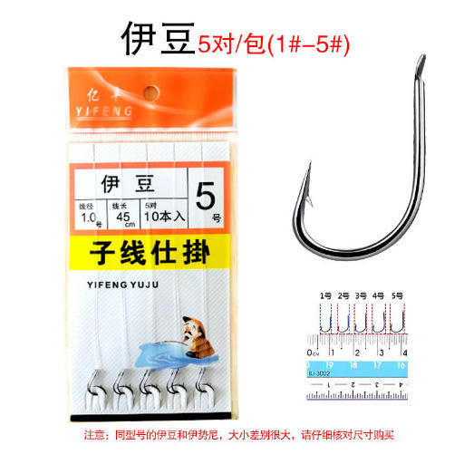 เบ็ดตกปลา Yifeng พร้อมสายเอ็น 5 ขนาด เหล็กกล้าคาร์บอนสูง สำหรับตกปลาคาร์พในน้ำจืด แบบลอยน้ำ หลายตัวเบ็ด
