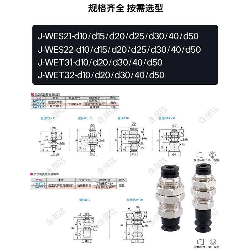 Yiheda Machinery Industrial Vacuum Suction Cup J-WES21/22 J-WET31/WET32 Hardware Support Efficient Nozzle Design