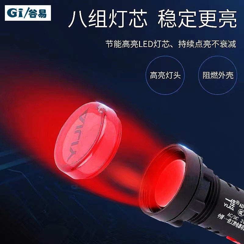 Yijia ไฟแสดงสถานะ LED AD16-22DS ของแท้สีทึบวัสดุพลาสติก220V 12V 24V 22MM