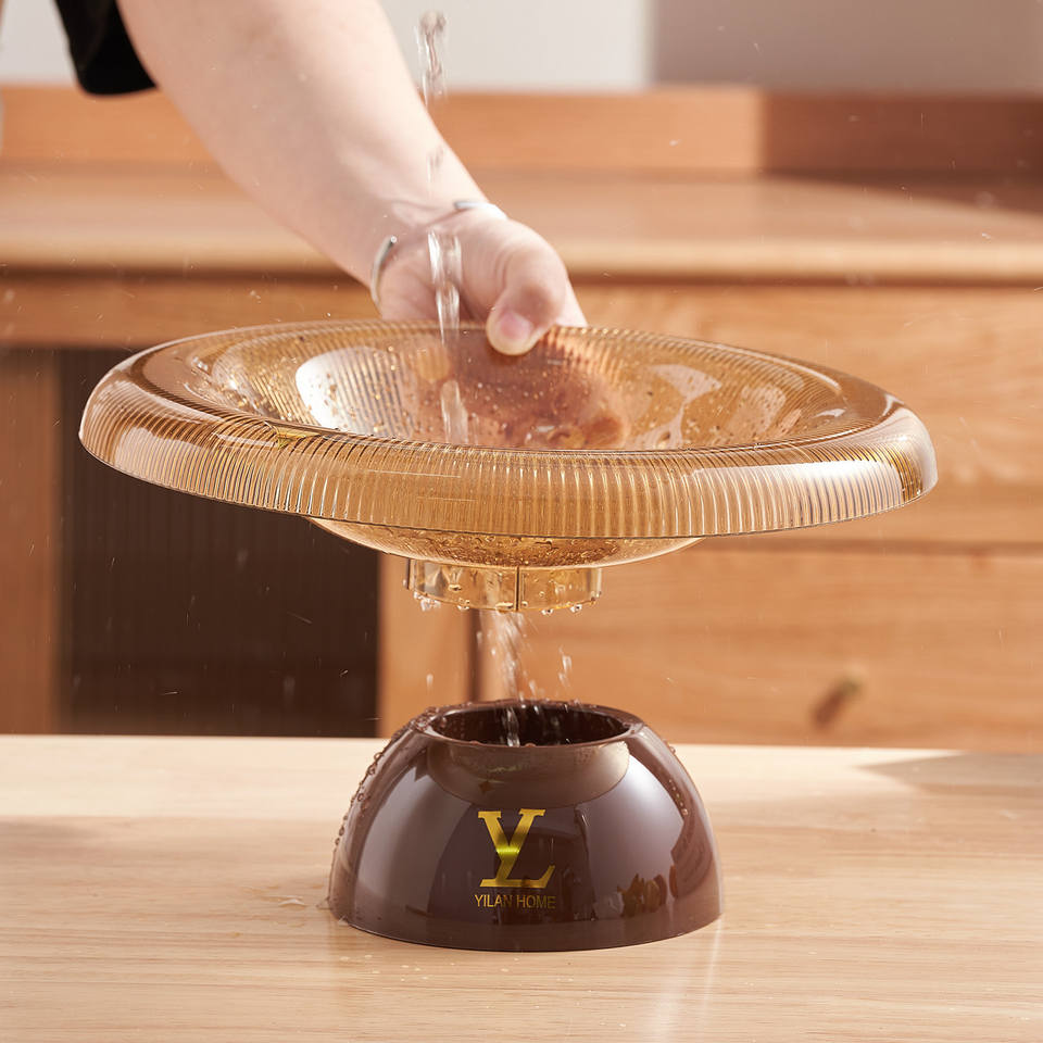 จานผลไม้พลาสติกทรงกลมลายทางสีเหลืองอำพัน ยี่ห้ออี้หลาน สำหรับจัดวางขนมในงานปาร์ตี้