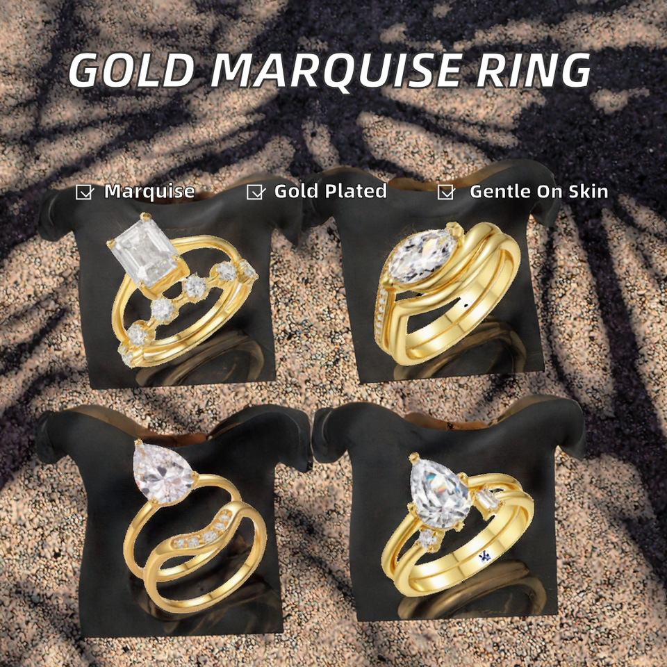 แหวนเงินแท้ 925 ชุบทอง 18K ประดับเพชรโมอิสซาไนต์ทรงมาร์ควิส สำหรับผู้หญิง ยี่ห้อ Yilin ได้รับการรับรองว่าไม่ก่อให้เกิดอาการแพ้ ดีไซน์ทันสมัย