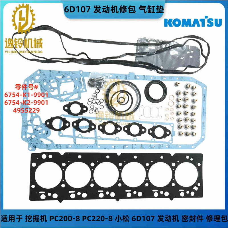 Yiling Mechanics Cylinder Head Gasket Kit 6D107 For Komatsu Excavator PC200 8 PC220 8