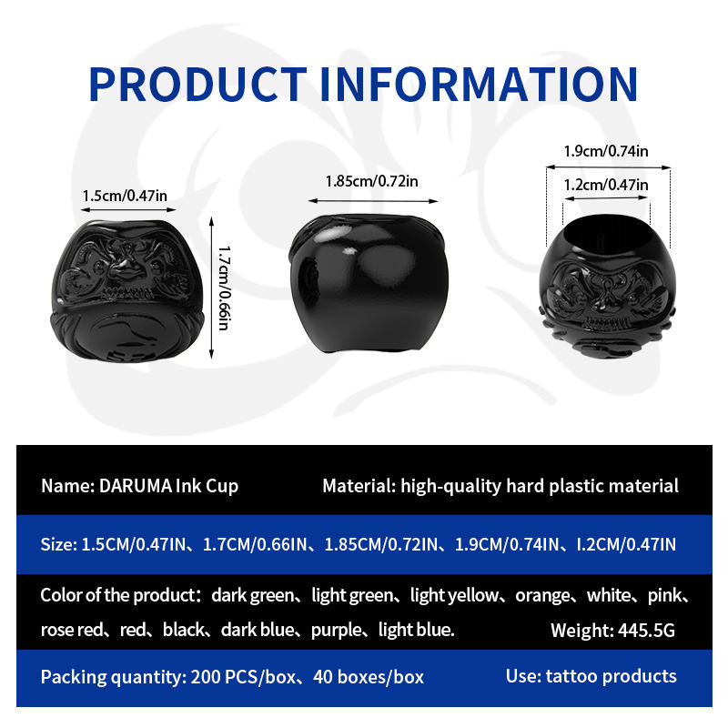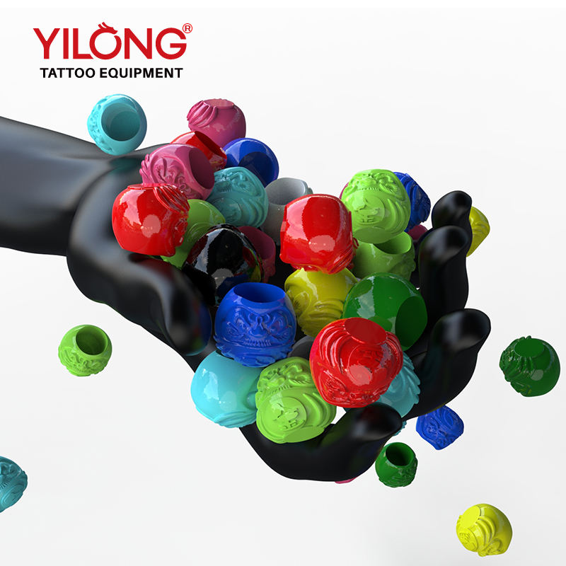 ถ้วยหมึกสักลายแบบใช้แล้วทิ้ง ยี่ห้อ Yilong คุณภาพสูง 12 สี บรรจุ 200 ชิ้น/กล่อง ขายส่ง ฝาพลาสติกสำหรับสี อุปกรณ์สักลายถาวร