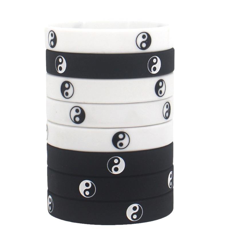 กำไลข้อมือซิลิโคนลายหยินหยางไท่จี๋ ขนาด 202*12*2 มม. สีดำขาว แฟชั่นคู่รัก ของขวัญ เครื่องประดับ