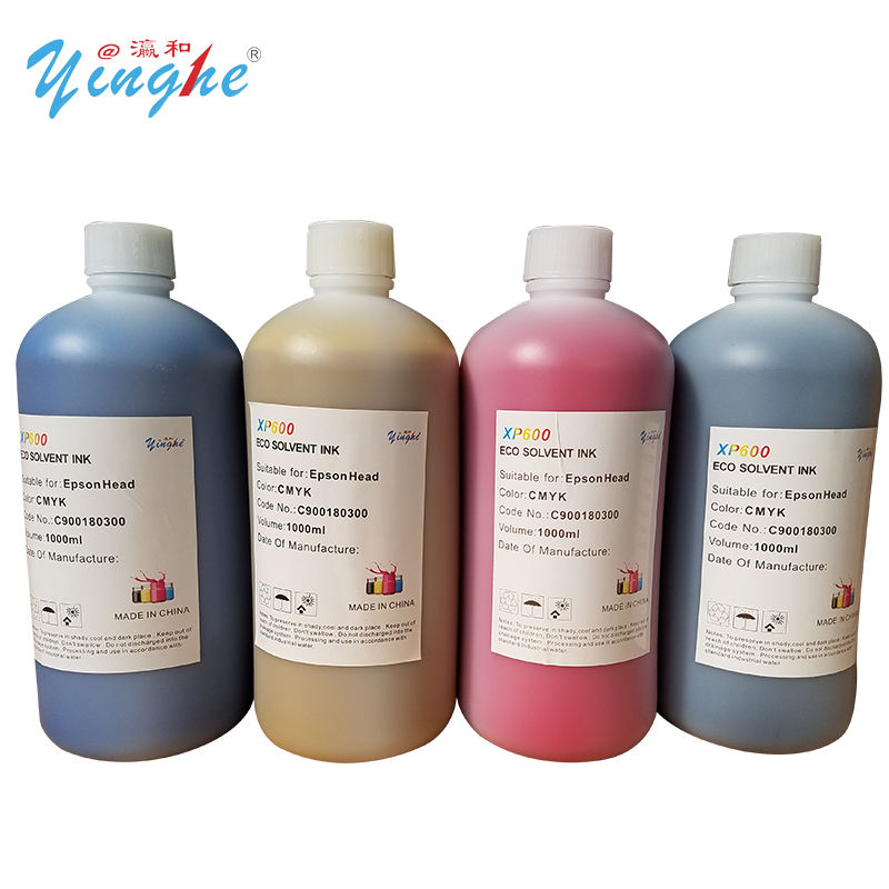 หมึกอิงค์อีโคโซลเว้นท์ CMYK ยี่ห้ออิงเหอ สำหรับหัวพิมพ์ XP600 DX5 I3200 คุณภาพสูง มีจำหน่ายในคลังสินค้าต่างประเทศของอิงเหอโกลบอล