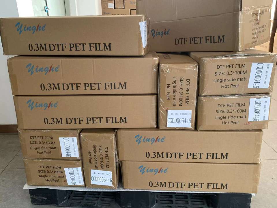 Yinghe ฟิล์มพิมพ์อิงค์เจ็ตแบบดิจิตอลขนาด60ซม. 30ซม. * 100ม. ม้วนฟิล์ม DTF สองด้านสำหรับการพิมพ์ฟิล์ม PET