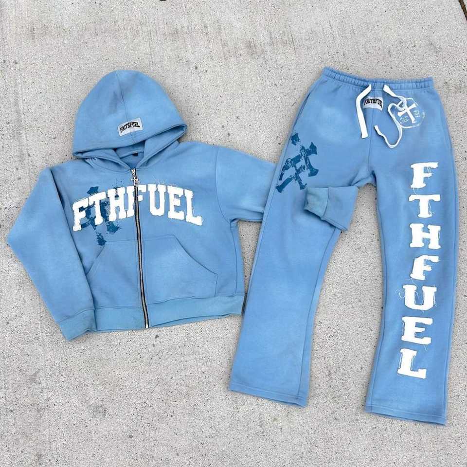 Yingling เสื้อฮู้ดปักลายกรดสำหรับทุกเพศเสื้อสเวตเตอร์และกางเกงมีฮู้ดแบบรูดซิป