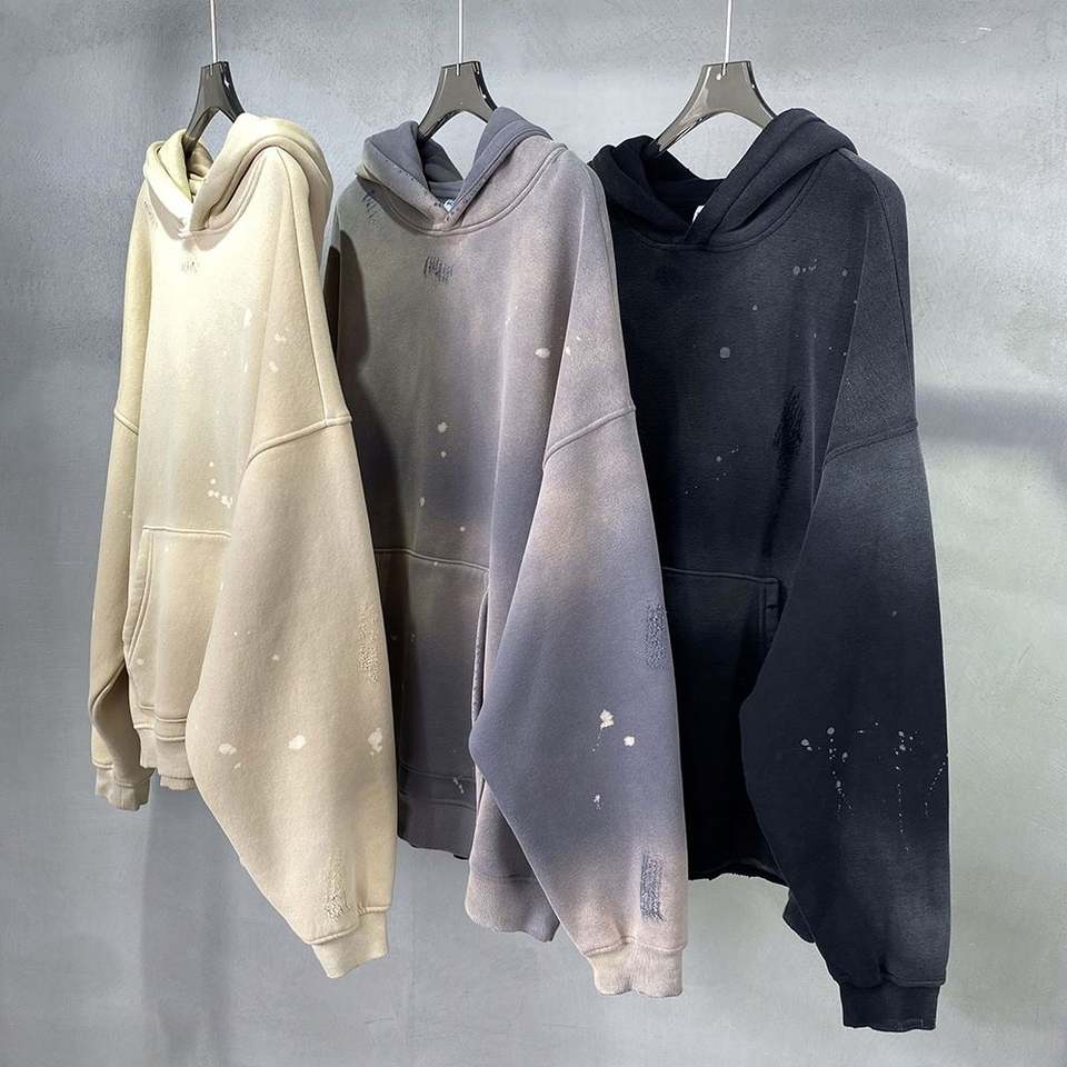 เสื้อฮู้ดดี้โอเวอร์ไซส์ยูนิเซ็กซ์ ยี่ห้อ Yingling พิมพ์ลายโลโก้ตามสั่ง ผ้าฝ้าย วินเทจ สโตนวอช แอซิดวอช ดีไซน์ลายเพ้นท์สาดสีแบบดิสเทรส