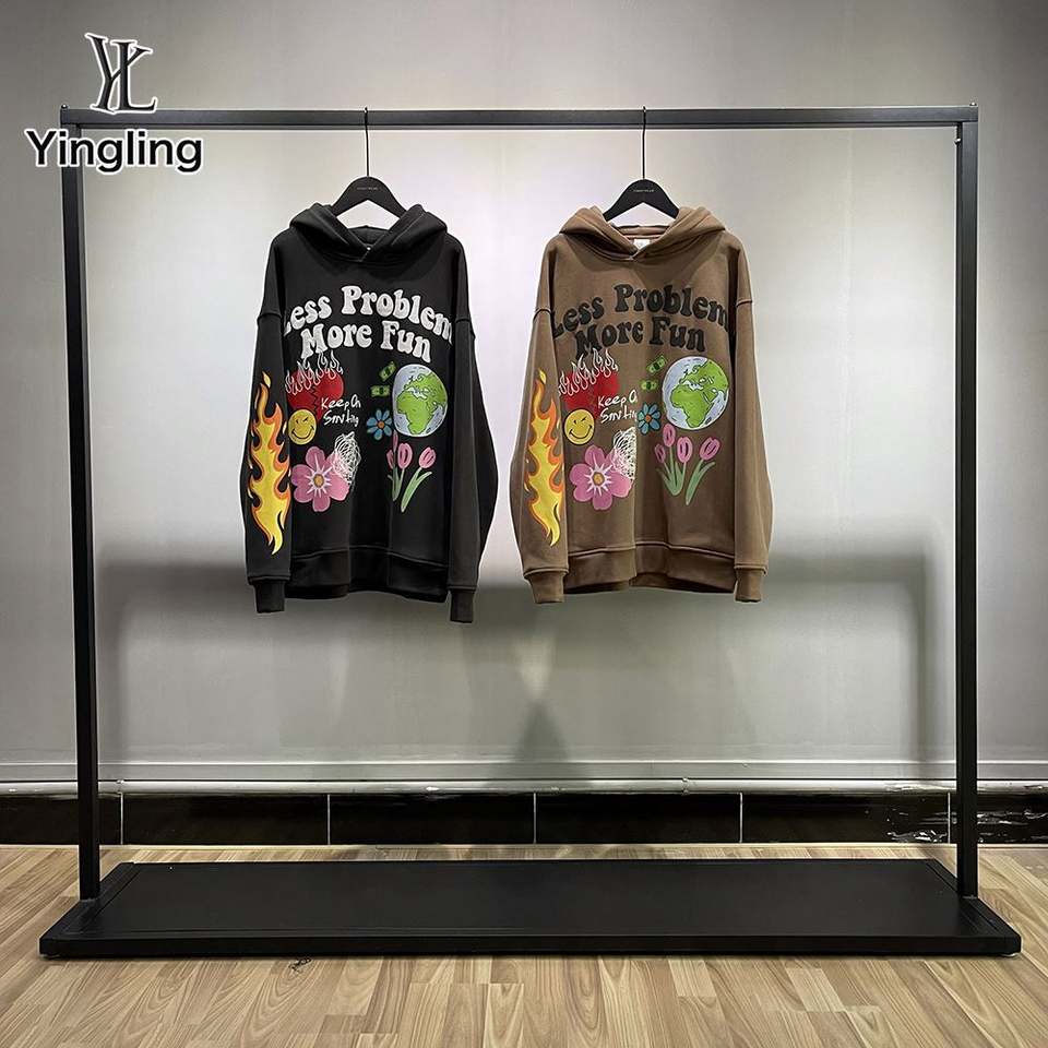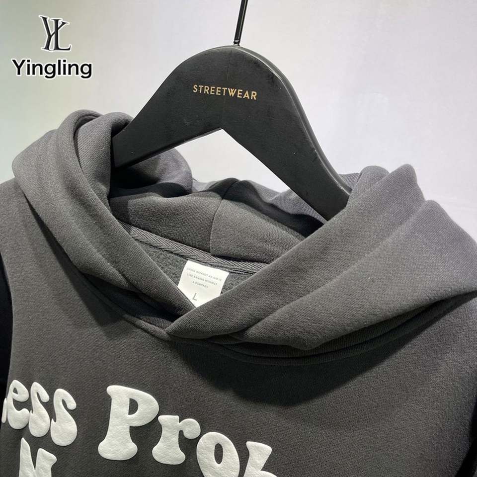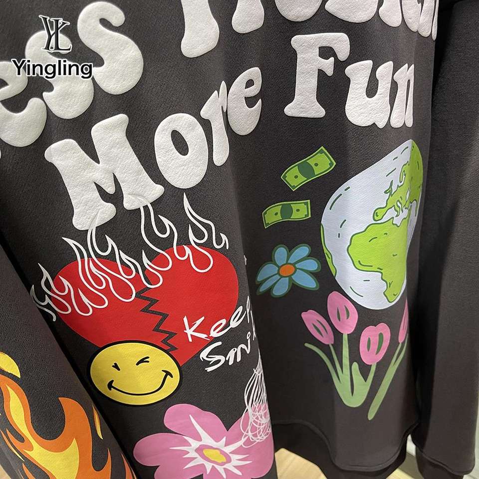 Yingling พัฟโฟม3D ผ้าฝ้ายฝรั่งเศสเทอร์รี่วินเทจพิมพ์ลายน้ำหนักแบรนด์อินเทรนด์โอเวอร์ไซส์เป็นมิตรกับสิ่งแวดล้อม