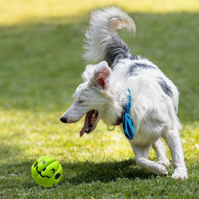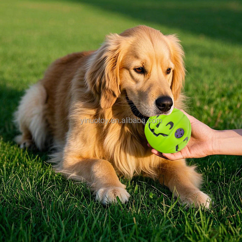 ลูกบอลฝึกสุนัขยี่ห้อ Yinuo ของเล่นเคี้ยวมีเสียงสำหรับออกกำลังกายและแก้ไขพฤติกรรมที่ไม่พึงประสงค์ ลายสีเขียว