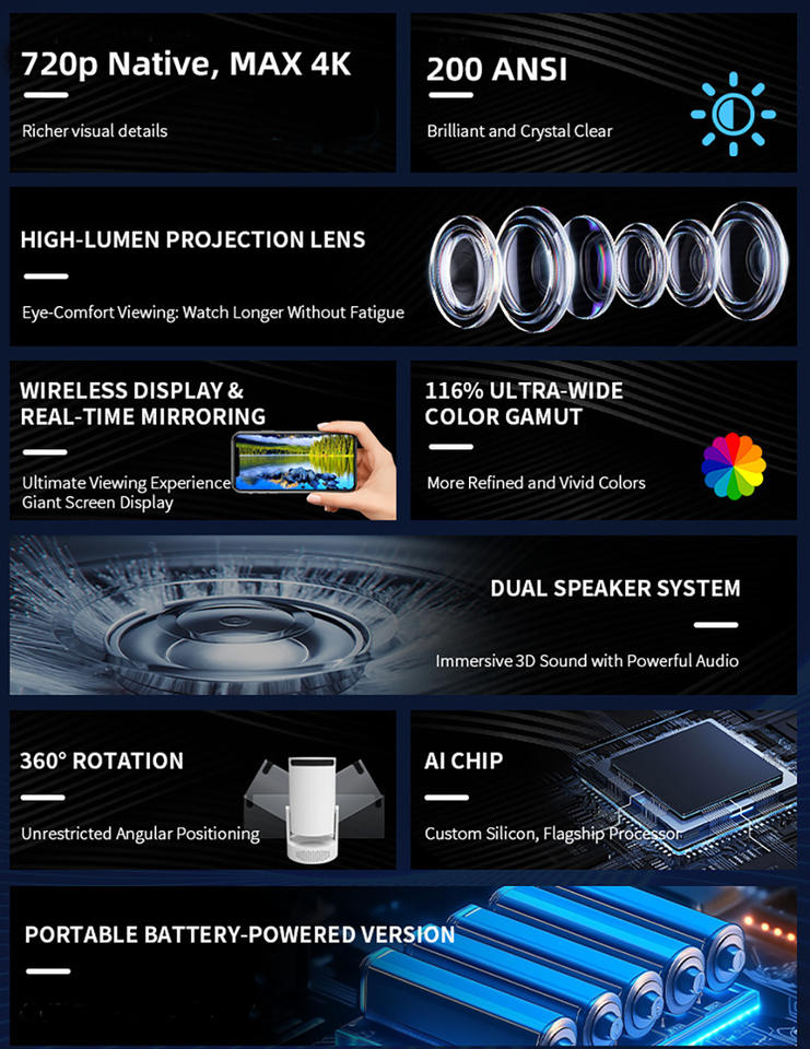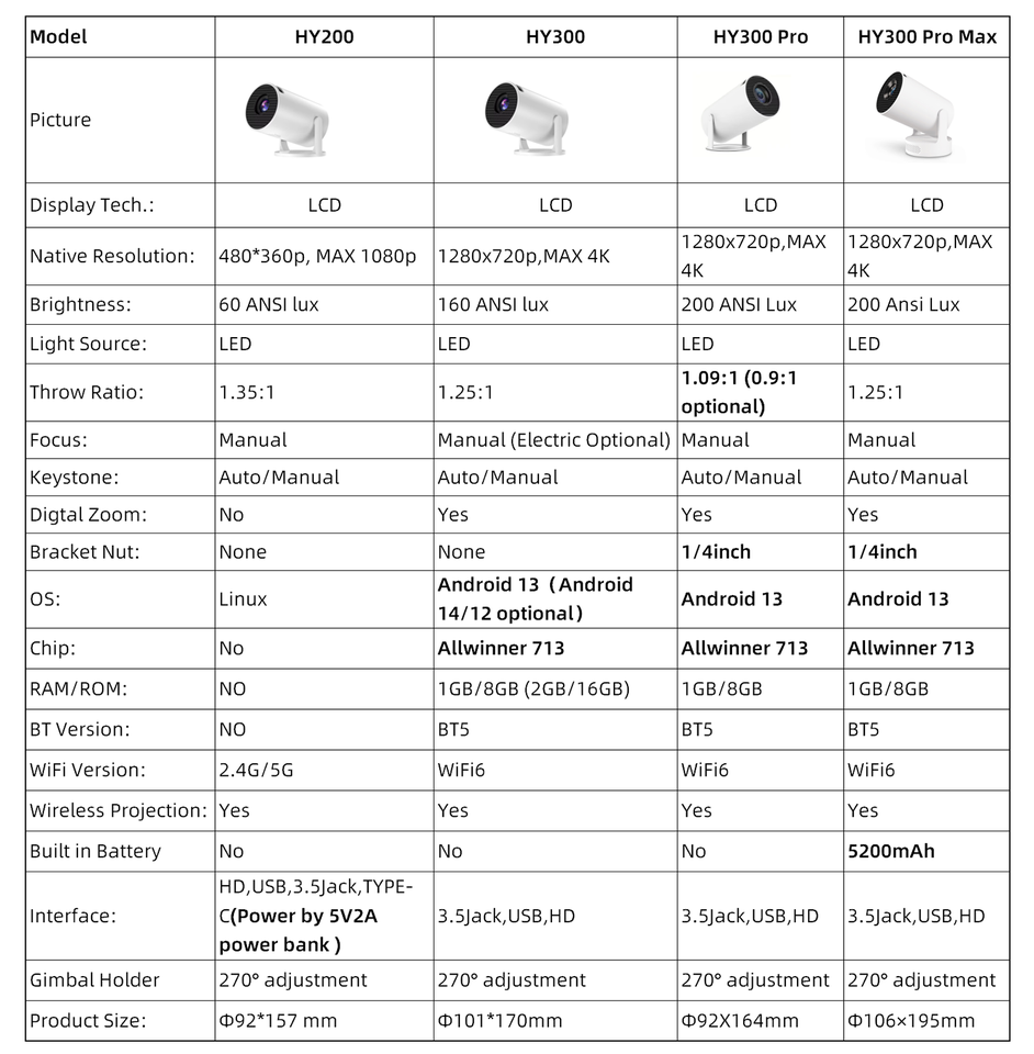Yinzam HY300โปรโปรแอนดรอยด์13โปรเจคเตอร์พร้อม WiFi 6 5G 160แอนซีลูเมน2GB 16GB HY300บีมเมอร์ขนาดเล็กแบบพกพาได้