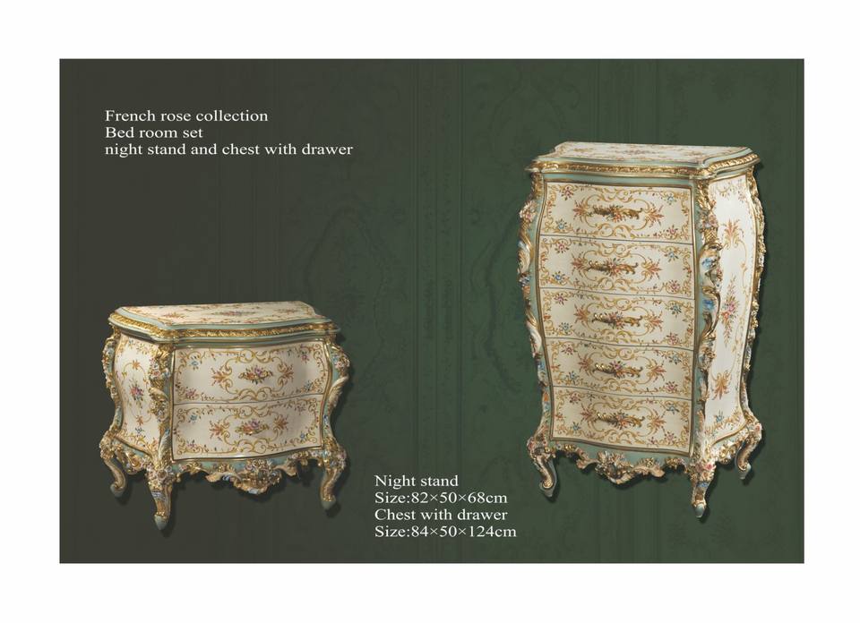 Yips ชุดเฟอร์นิเจอร์ในห้องนอน LD-1203-0146,ชุดเฟอร์นิเจอร์ลายดอกกุหลาบสไตล์ฝรั่งเศสที่พักคลาสสิก
