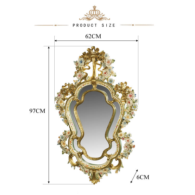 กระจกวาดลายด้วยมือสไตล์โบราณ รุ่น Yips LD-1203-0153 ลายดอกกุหลาบ