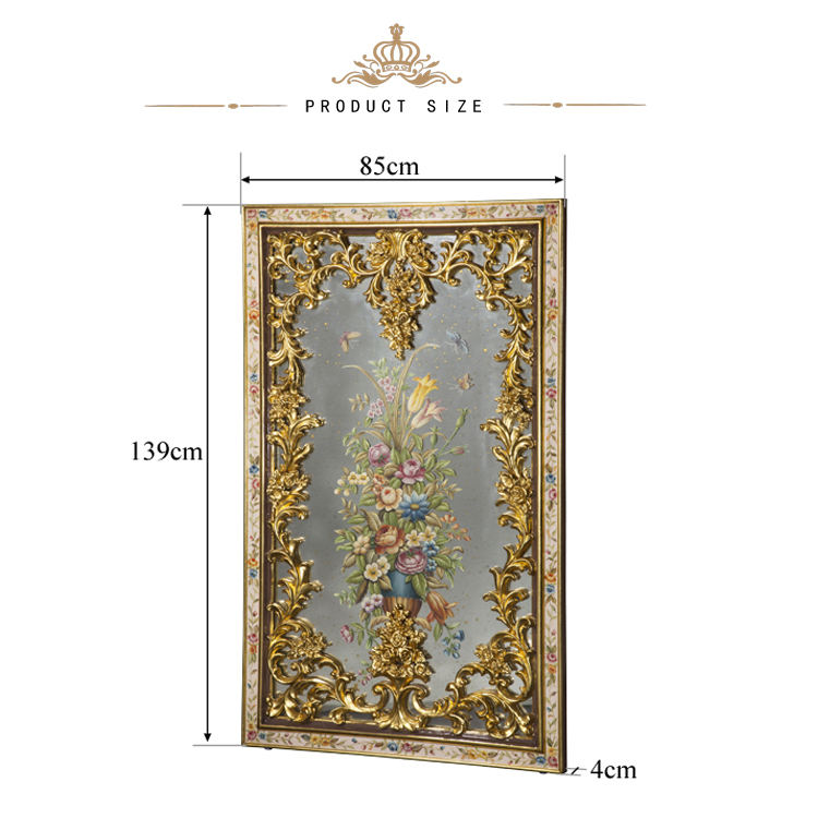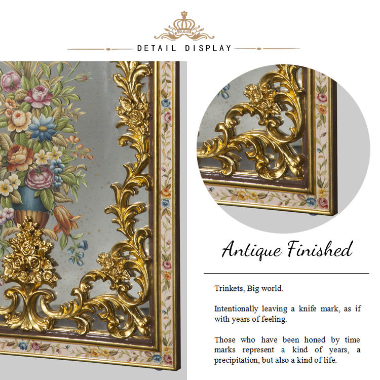 Yips งานแกะสลักเรซินสไตล์ฝรั่งเศสโรส LD-1604-1402,กระจกติดผนังแนวคลาสสิกตกแต่งห้องนั่งเล่นลายดอกไม้วาดด้วยมือ