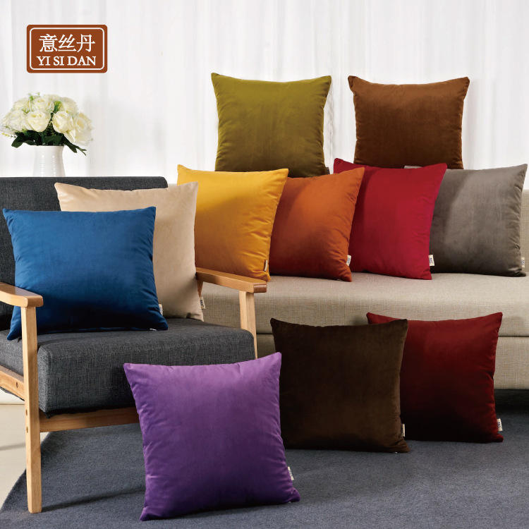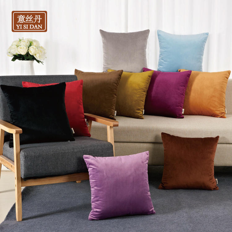 หมอนอิงกำมะหยี่ Yisidan ทรงสี่เหลี่ยม สีพื้น ผ้าพลัฌ สำหรับโซฟา เตียงนอน ปลอกถอดซักได้ ของตกแต่งบ้าน