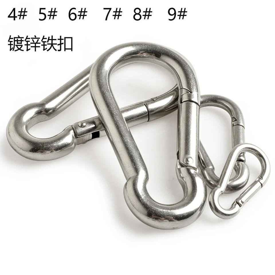 คาราไบเนอร์รูปทรงน้ำเต้าเหล็กชุบสังกะสีจากอี้หวู่ รับน้ำหนักได้ 10 กก. พร้อมสปริงฮุค สำหรับปีนเขา กิจกรรมกลางแจ้ง เชื่อมต่อและยึดตรึง