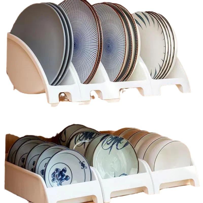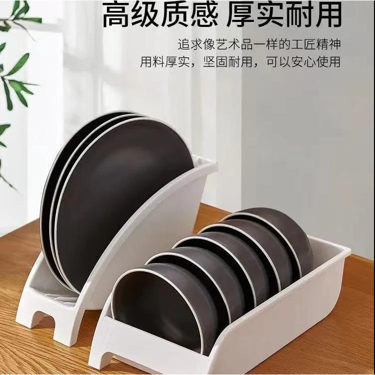 ชั้นวางของในครัวแบบซ้อนได้ทรงสี่เหลี่ยมพร้อมถาดสำหรับจานชาม ชั้นวางจานในตู้