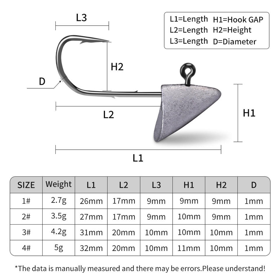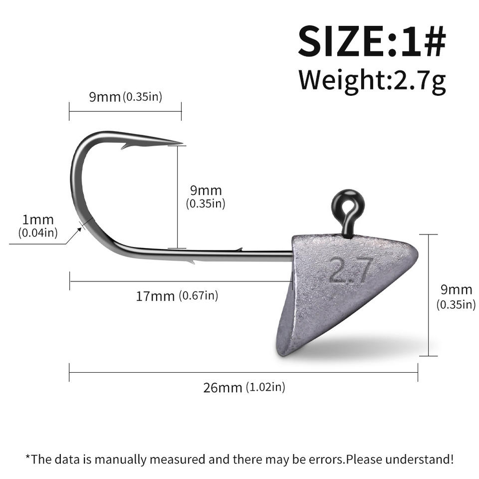 ตะขอจิ๊กหัวสามเหลี่ยมอี้หวู่ หมายเลข หัวตะกั่วเหล็กคาร์บอนสูง 2.5 สำหรับตกปลาเบสในแม่น้ำ รุ่น XY353