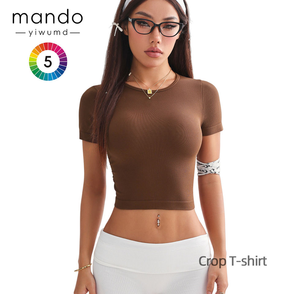 Yiwu เสื้อยืดครอปรัดรูปแขนสั้นของผู้หญิงเสื้อยืดครอปเซ็กซี่รัดรูปแห้งแขนสั้นสำหรับฟิตเนสพิลาทิสโยคะ