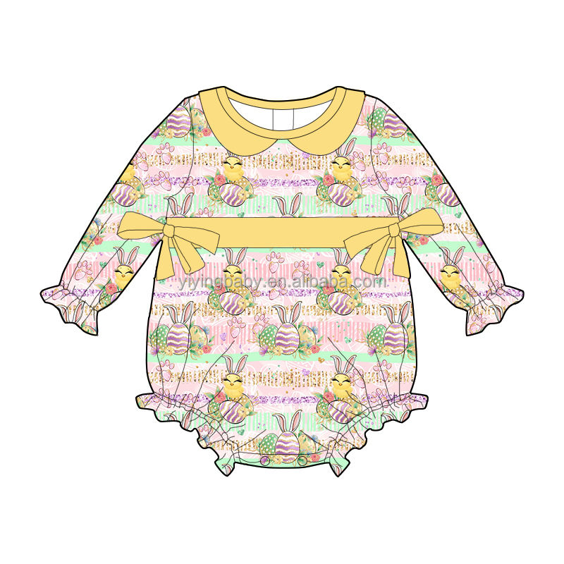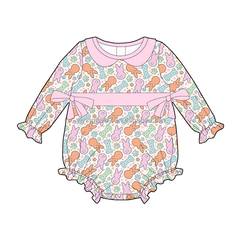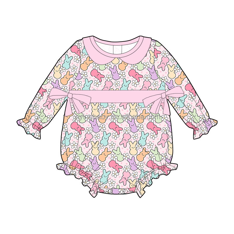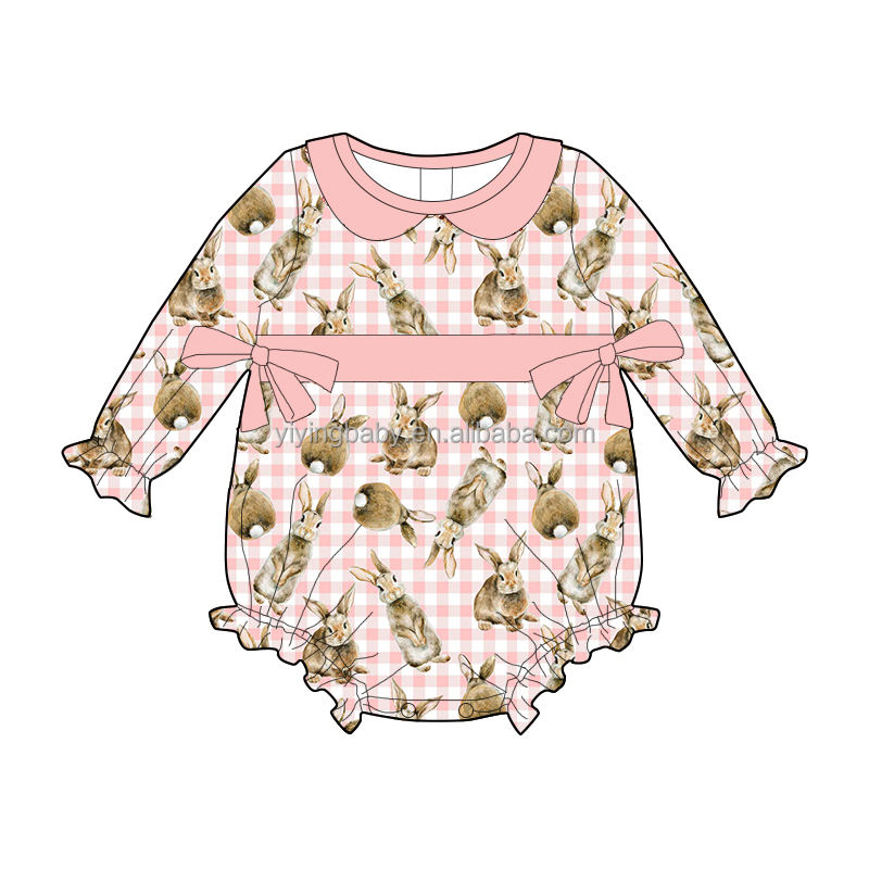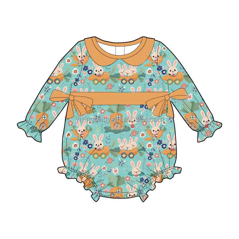 Yiying Newborn Baby Rabbit Print Romper Soft Bamboo Doll Neck Long Sleeve Girl Bodysuit with Bow for Daily Life Casual Outing