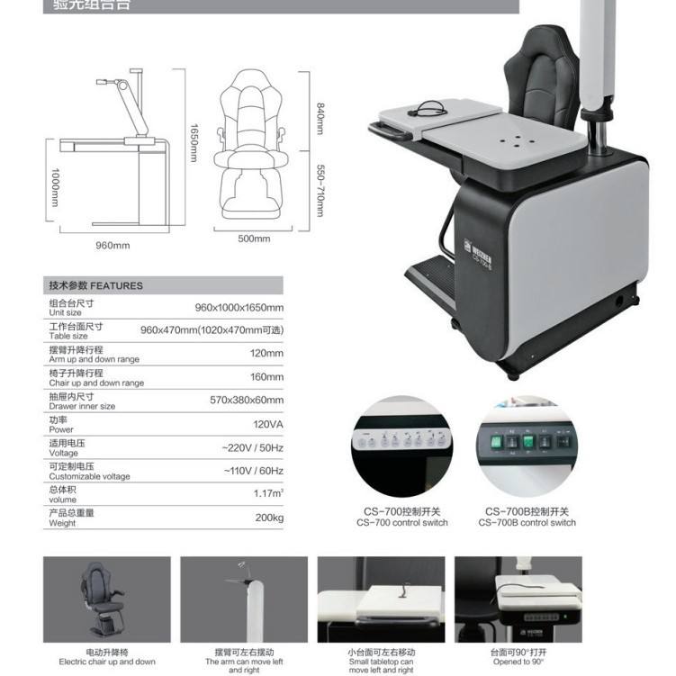 ระบบตรวจวัดสายตาไฟฟ้า Yiyou CS-700B พร้อมเก้าอี้ไฟฟ้า ขนาด 960x1000x1650 มม. พร้อมโต๊ะและที่วางแขนปรับได้สำหรับการตรวจวัดสายตา