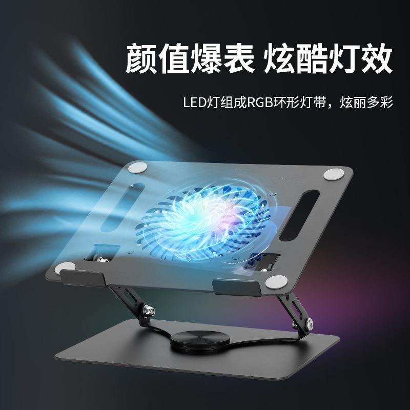 Yl 910 ขาตั้งแล็ปท็อปอลูมิเนียมอัลลอยด์พัดลมเดี่ยวระบายความร้อนด้วยอากาศพร้อมไฟ RGB LED สำหรับแท็บเล็ตพีซี