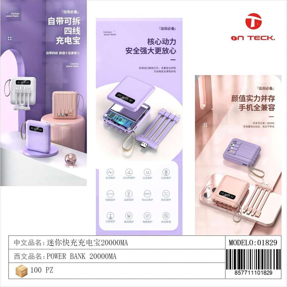On Teck Sa De Cv Power Bank 20000Mah Portable Charging Type C Input Output Lightweight Durable Travel Home Use