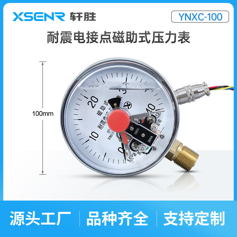 เกจวัดแรงดันแบบแอนะล็อก Ynxc 100 ขนาด 100 มม. ความแม่นยำ 1.6 พร้อมระบบป้องกันแรงกระแทกแบบแม่เหล็ก ข้อต่อเกลียว ผลิตที่ซูโจว