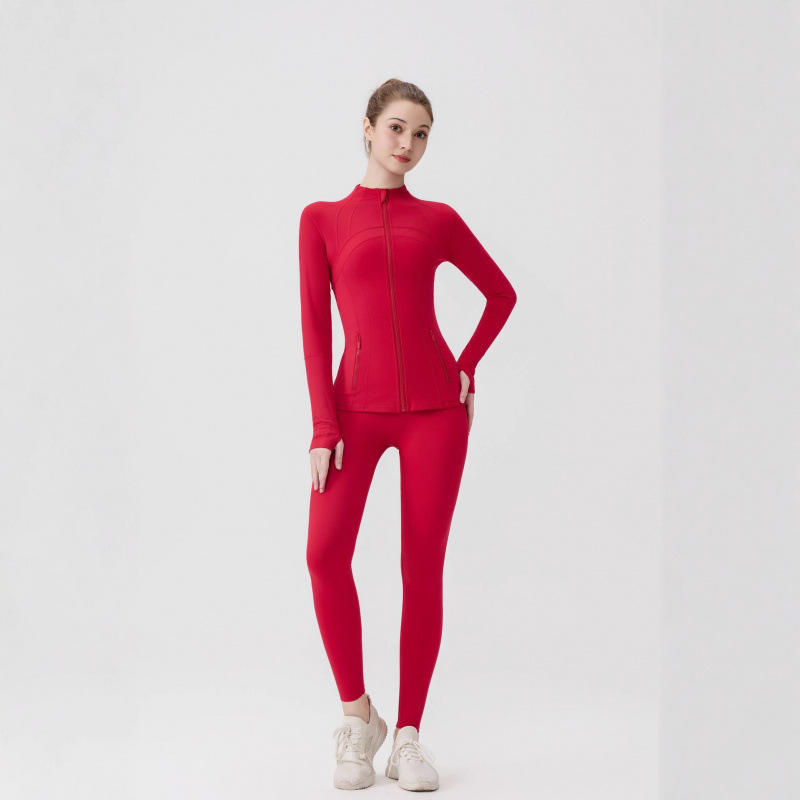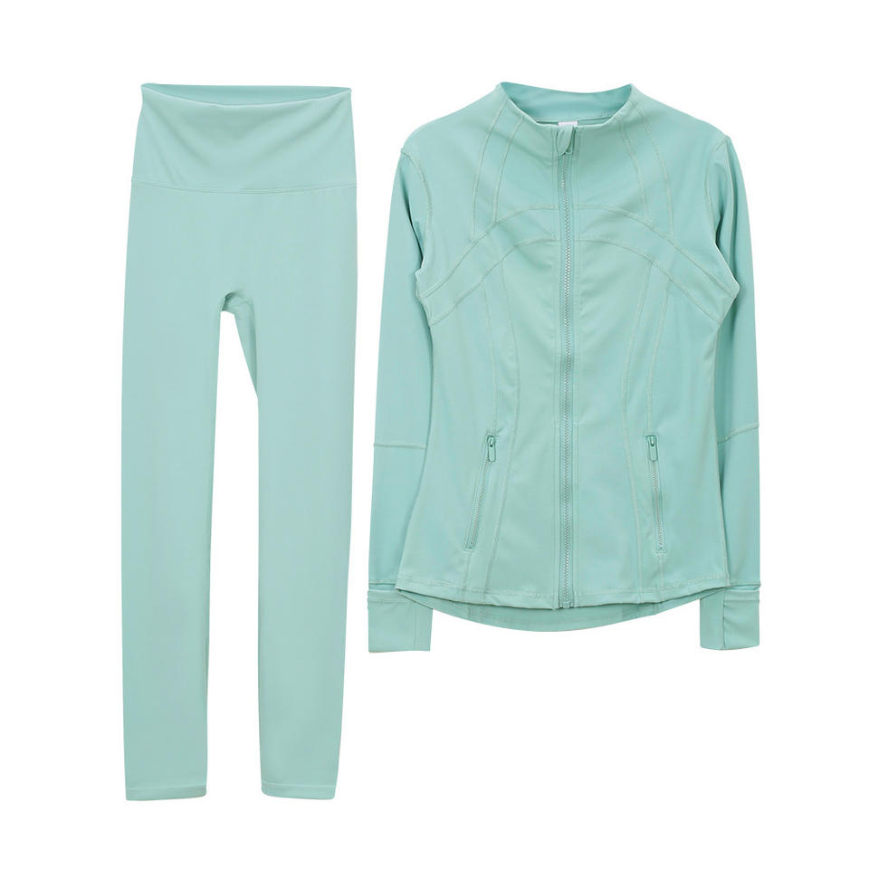 เสื้อแจ็คเก็ตโยคะและกางเกงเลกกิ้งสำหรับวิ่ง ยิม โยคะ แห้งเร็ว ระบายอากาศได้ดี คุณภาพสูง แฟชั่นหรูหรา ชุดกีฬา