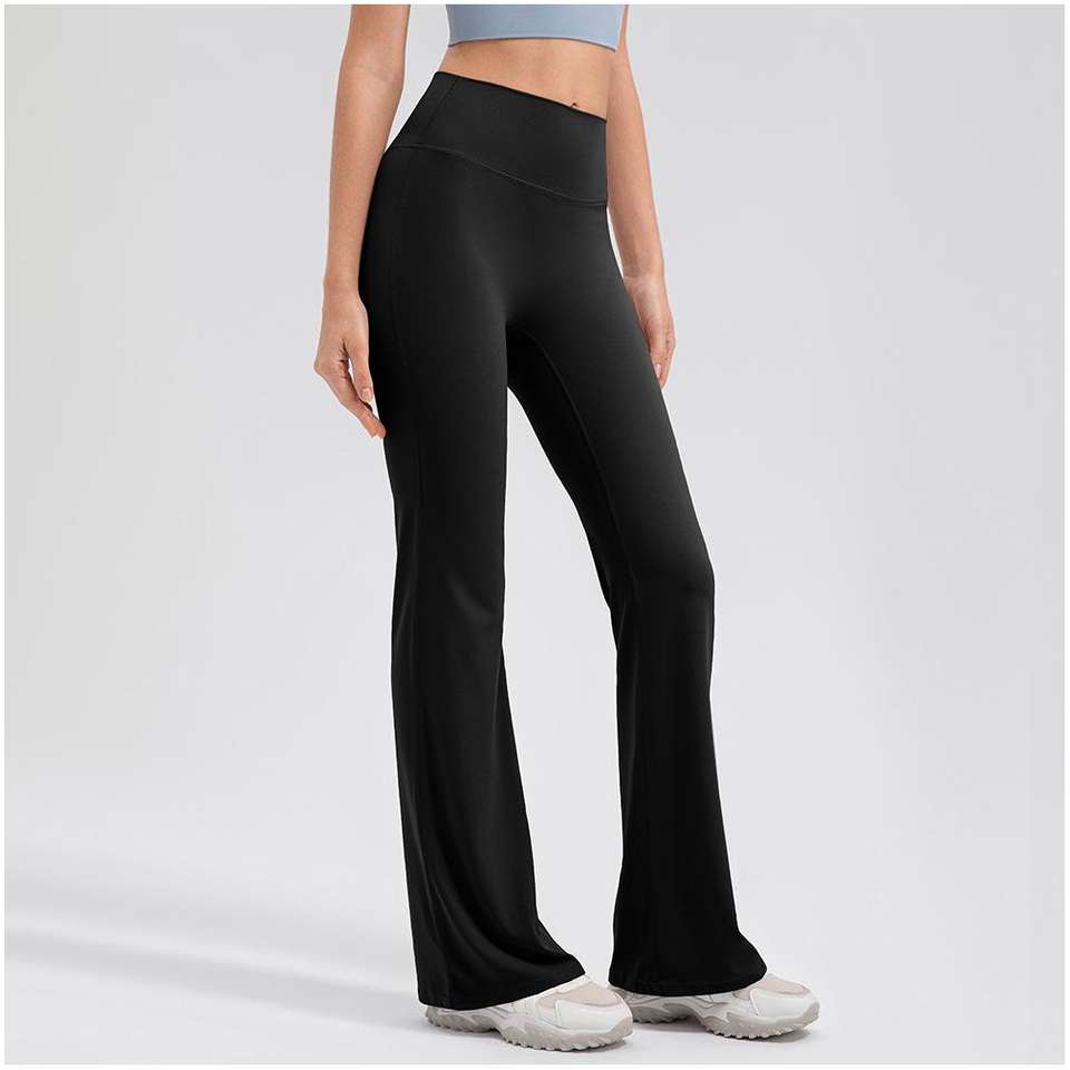 กางเกงโยคะขายาวสำหรับผู้หญิง เอวสูง เนื้อผ้านุ่ม 100% ผ้าฝ้าย ระบายอากาศได้ดี ช่วยยกกระชับสะโพก ทรงวีคัท ขาบาน สไตล์ลำลอง