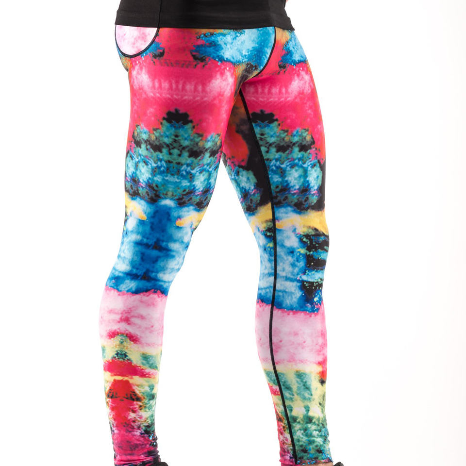 กางเกงโยคะ/กางเกงรัดรูปสำหรับผู้ชายเลกกิ้งผ้าคอตตอนมีสีดีไซน์ซับลิเมชันพร้อมโลโก้ตามสั่ง