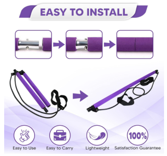 แท่งออกกำลังกายโยคะพิลาทิสแบบพกพาถอดออกได้บาร์ออกกำลังกายยืดโยคะพร้อมสายรัดต้าน