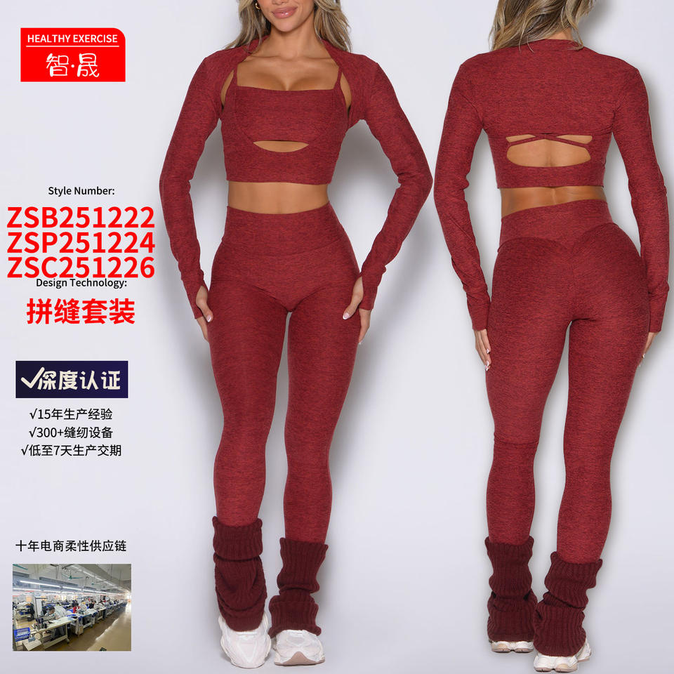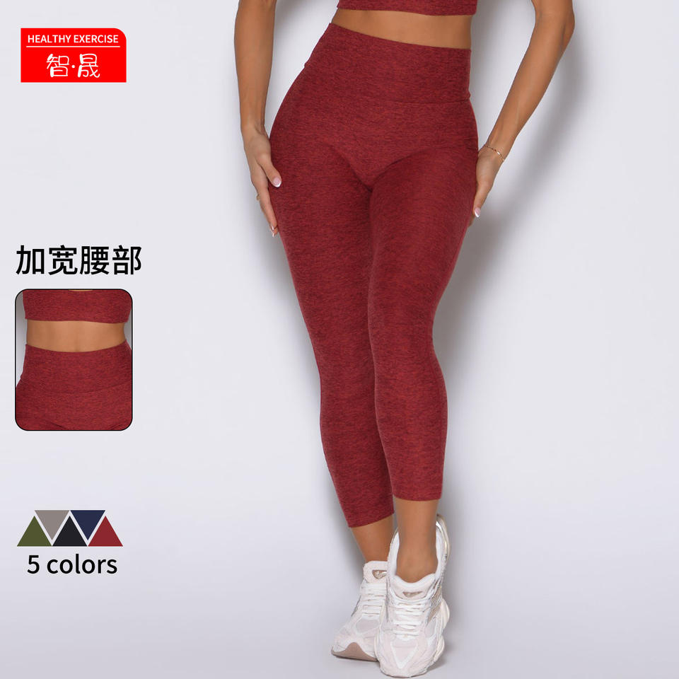 ชุดโยคะ กางเกงเลกกิ้งเอวกลาง มีรูสำหรับนิ้วโป้ง ดีไซน์ไขว้หลัง กระชับสัดส่วน เก็บหน้าท้อง สำหรับผู้หญิง ออกกำลังกาย ฟิตเนส สีแดง