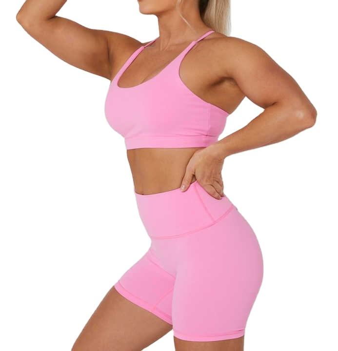 ชุดโยคะพร้อมกางเกงขาสั้นออกกำลังกายไร้รอยต่อชุดออกกำลังกายน้ำหนักเบามีความยืดหยุ่นระบายอากาศได้ดีมีสไตล์
