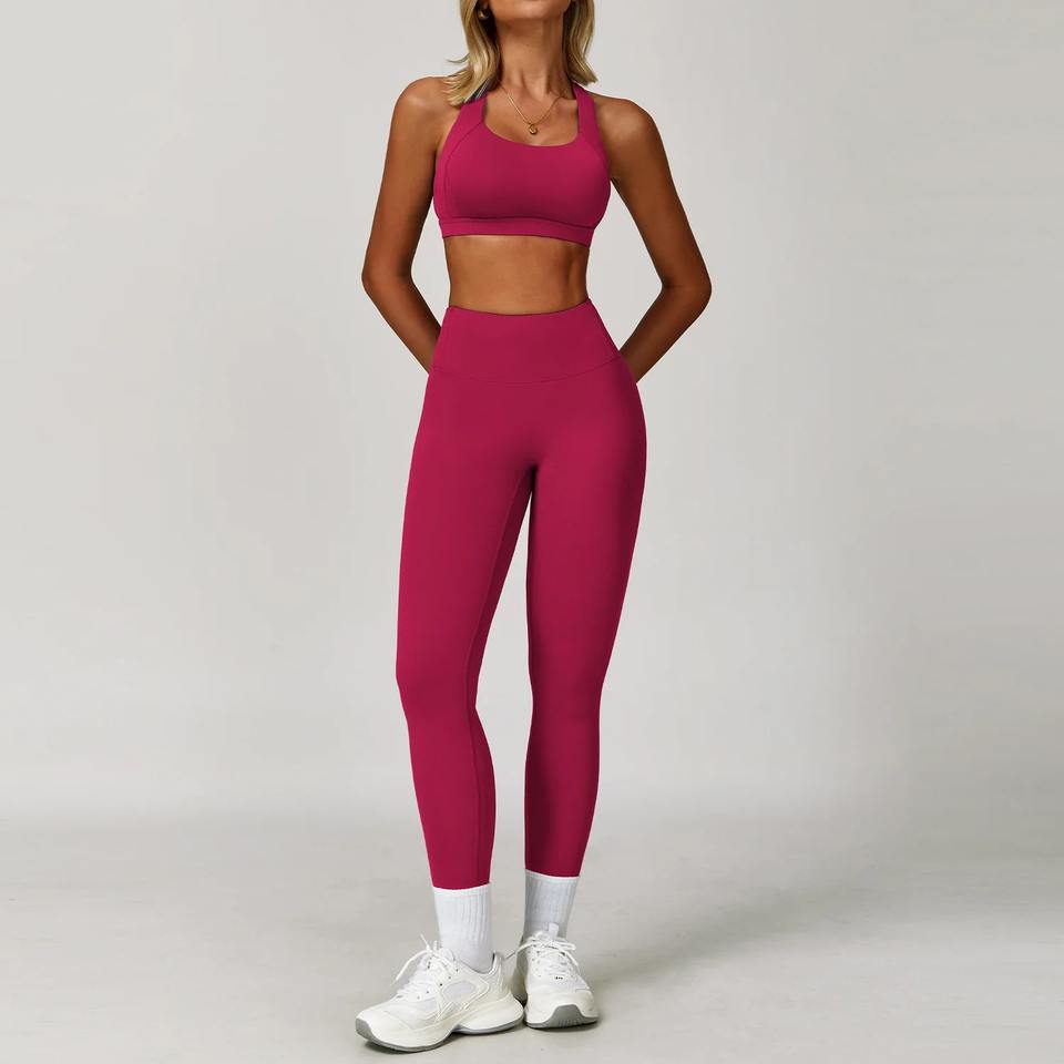 ชุดเซตโยคะชุดวอร์มผู้หญิงชุดออกกำลังกายแบบดันทรงชุดออกกำลังกายสปอร์ตบรากางเกงเลกกิ้งออกกำลังกาย