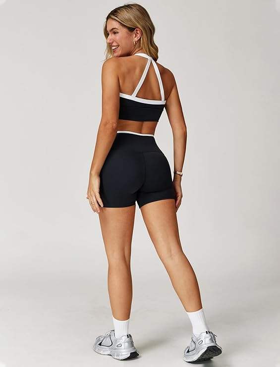 ชุดเซตโยคะฟิตเนสผู้หญิง2ชิ้นชุดโยคะสั้นและบราสำหรับผู้หญิง