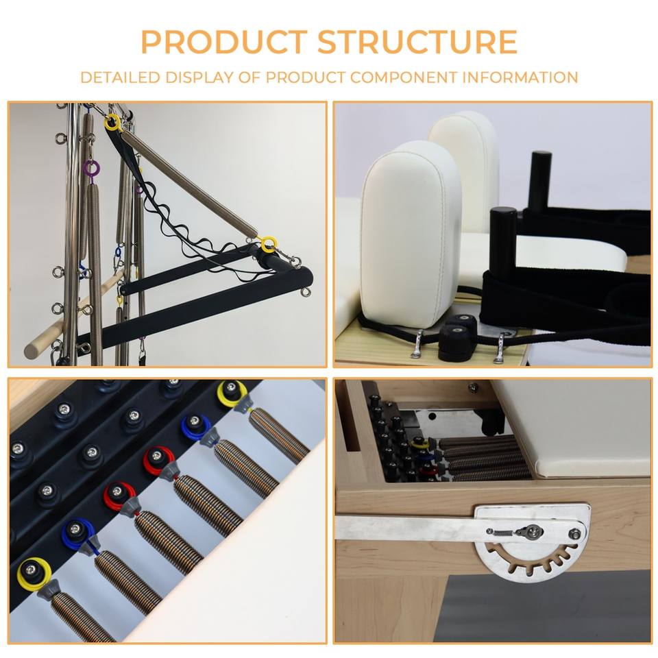 เตียงพิลาทิสแบบปรับได้ พกพาสะดวก สำหรับมืออาชีพ ยี่ห้อ Yoga Studio ทำจากไม้เมเปิล พร้อมทาวเวอร์ เป็นมิตรกับสิ่งแวดล้อม รางเลื่อนแบบ All Track