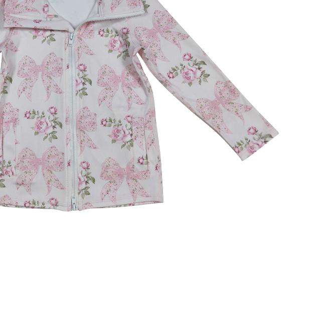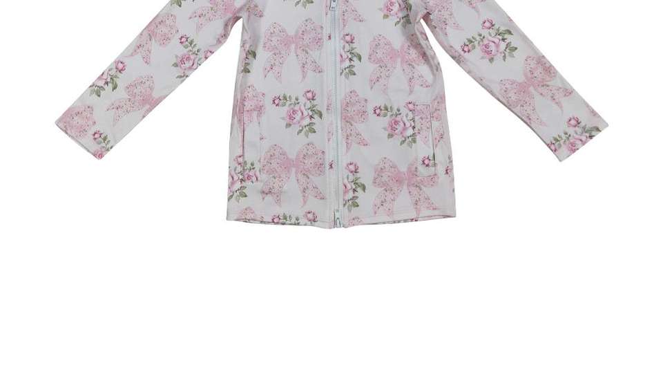 ชุดเสื้อผ้าสำหรับเด็กหญิงวัยหัดเดินเล่นโยคะเสื้อนอกแขนยาวมีซิปรูดลายดอกไม้สีชมพู