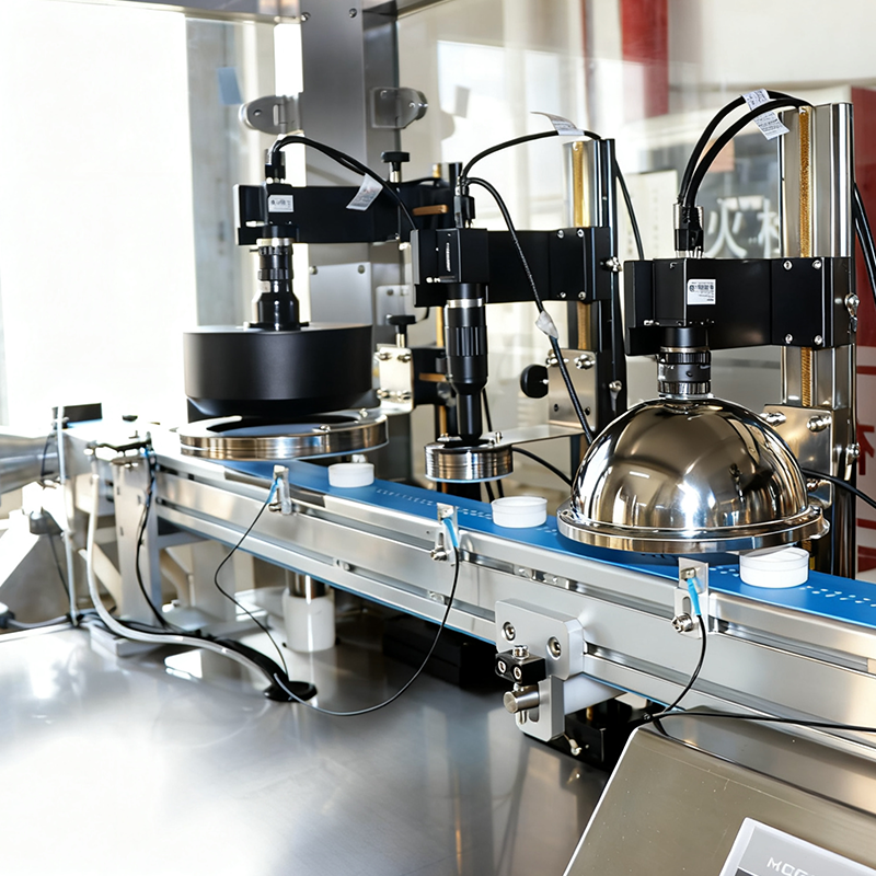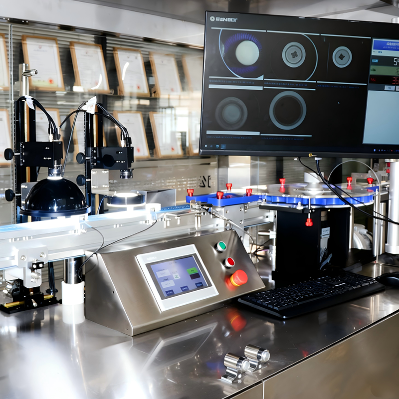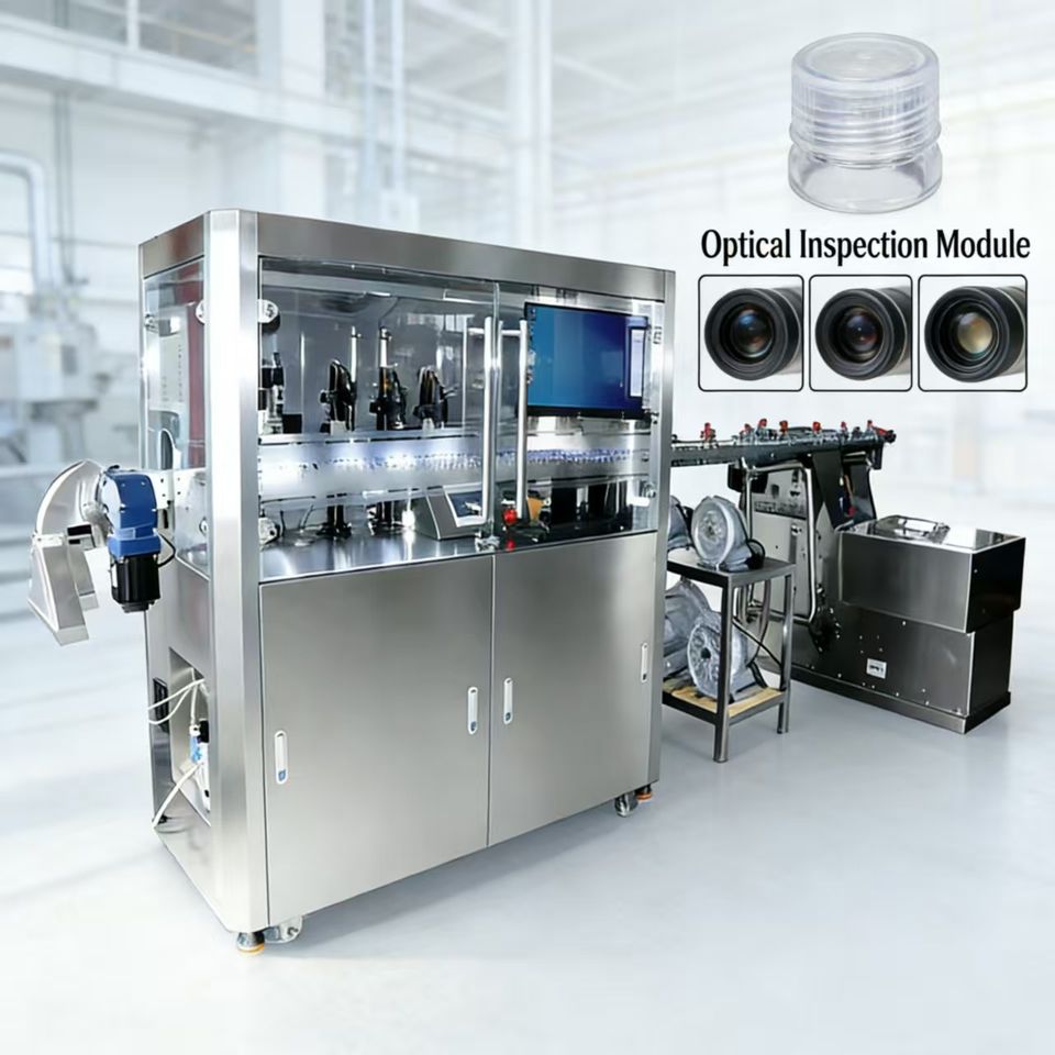 เครื่องตรวจสอบฝาขวดโยเกิร์ตและซอส: ตรวจสอบขนาด, คราบสกปรก, ซีลที่ขาดหายไป, ระบบดีดฝาขวดอัตโนมัติ, การคัดแยกความเร็วสูง