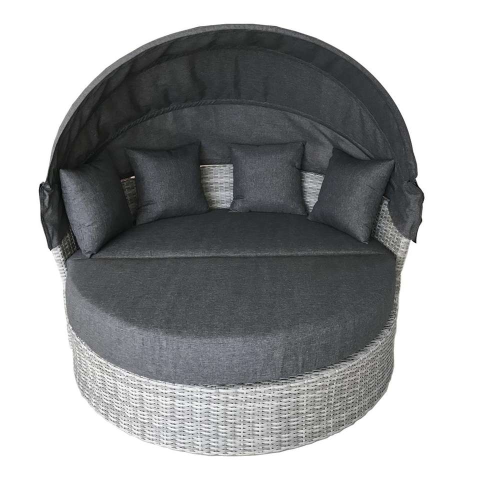 HMS เตียงกลางวันกลางแจ้งปรับได้161.85x71.37x8.58นิ้วโลหะสีเทาพร้อมหมอนอิง Taupe และมุ้งสำหรับอาบแดด